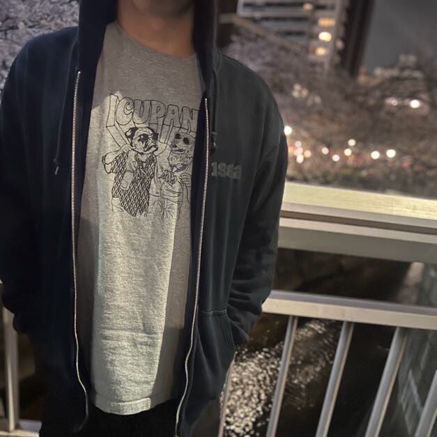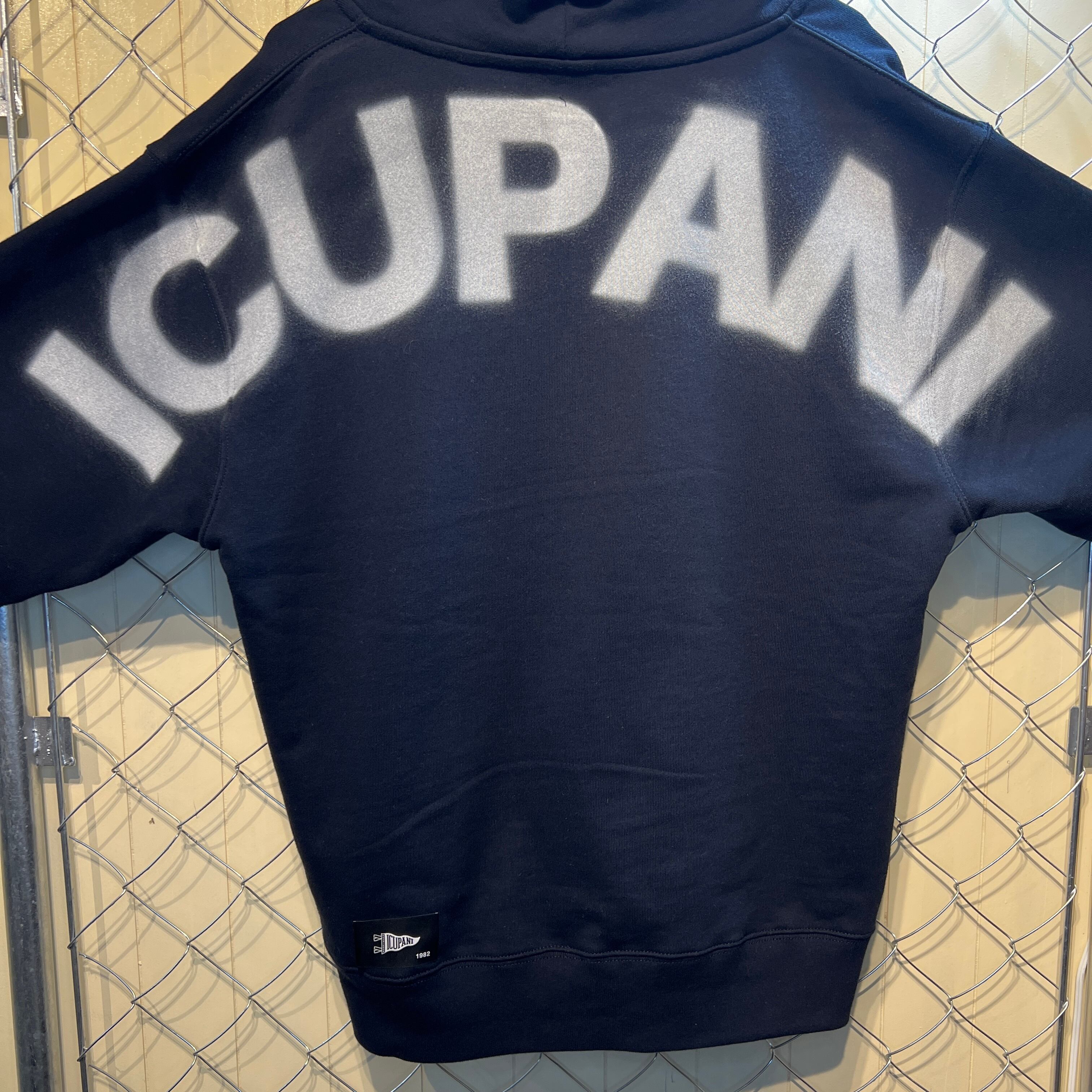ネイビーカラーのICUPANIオリジナルデザインのジップパーカー。