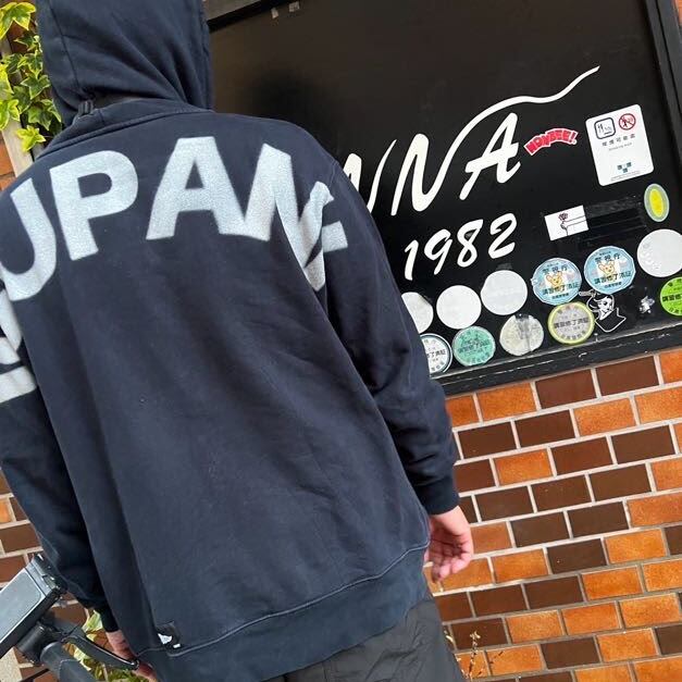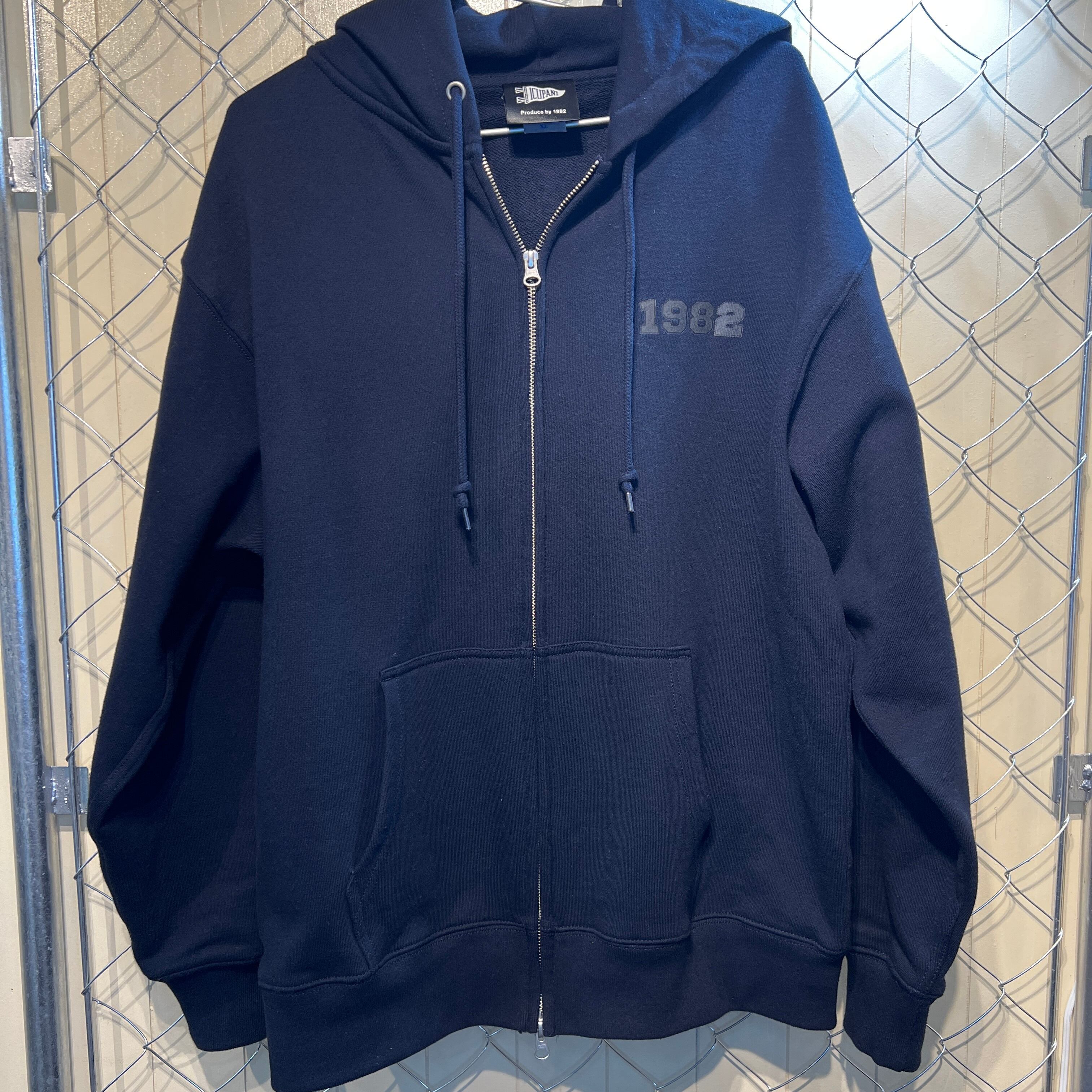 バックの大胆なデザインが特徴です。胸元には1982のプリントでシンプルな仕上がりとなりました。ダブルファスナー仕様でフルジップなので、着脱もラクチン。L,XLサイズのみで、体型を気にせずゆったりと着用いただけます。ネイビーとグレーからお好みのカラーをお選びいただけます。